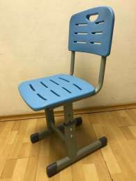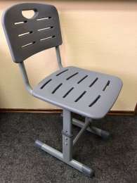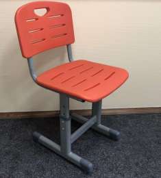 Ученический стул состоит из металлического каркаса, сидения и спинки.
