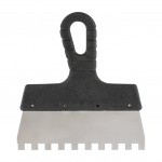 В комплект входит 3 шпателя с прямоугольными зубьями применяются для разравнивания клеевых растворов с последующей укладкой облицовочного материала: керамическая плитка, натуральный камень и др.