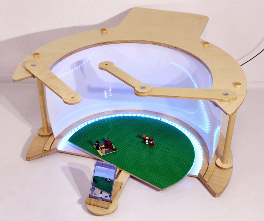 С помощью цифровой фото-видеокамеры (в комплект НЕ входит) установленной на бортик осуществляется покадровая съёмка. Фото-видеокамера может перемещаться на бортике для изменения угла съемки.