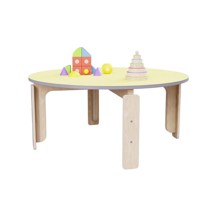 Круглый растущий стол из коллекции «НЕГА» с плавными линиями обеспечивает безопасное перемещение детей, как для приема пищи, так и для игровых зон.