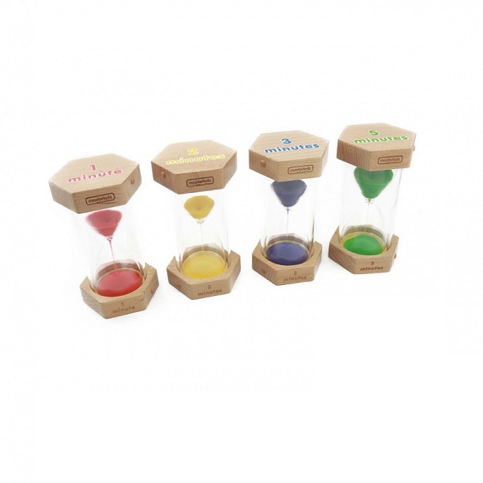 Прочные школьные панели-таймеры из твердой древесины и пластика. В комплекте один 1-минутный, один 2-минутный, один 3-минутный и один 5-минутный таймеры. Идеально подходит для игр, задач и других связанных со временем проектов.
