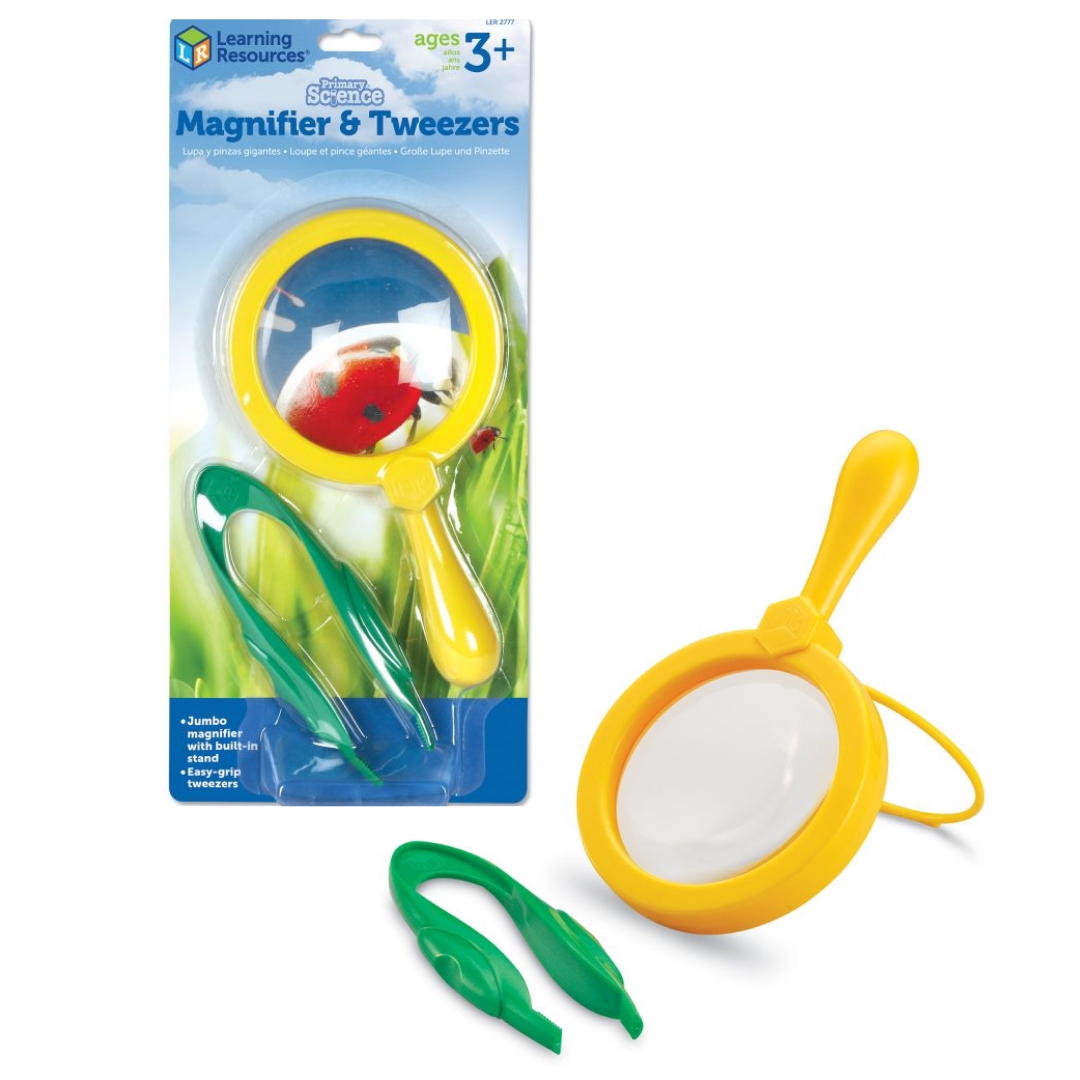 Маленькие исследователи будут с удовольствием играть этими разноцветными щипчиками и лупой.