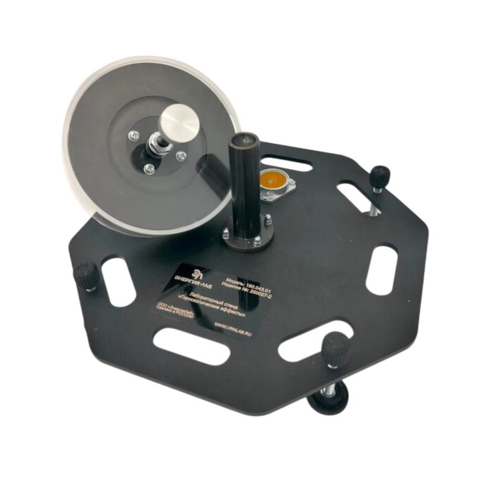 Лабораторный стенд "Гироскопические эффекты" предназначен для проведения лабораторных работ по изучению явлений, проявляющихся при различных воздействиях на быстровращающийся диск. Одновременно работы проводятся с группой из 2, 3 обучаемых. Комплект выполнен согласно ТУ 32.99.53–001–09519063–2019 и имеет соответствующий сертификат производителя ГОСТ Р и сертификат качества ИСО 9001-2015 на данный вид продукции.